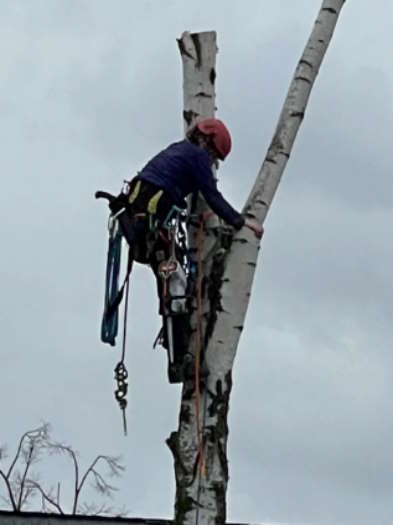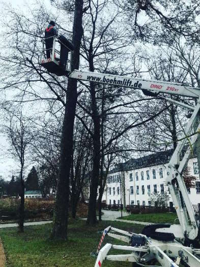Auch Bäume benötigen regelmäßige fachgerechte Pflege: Dazu gehört das Auslichten der Krone, Entfernen von Totholz und reibenden Ästen sowie die Entfernung von gefährdenden Ästen oder die Baumfällung.